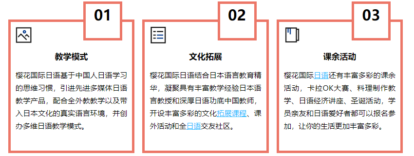 长期以来的实践证明,樱花国际日语的教学模式彻底摆脱了传统语言学习的枯燥感,帮助学员在获得日本语言技能的同时告别哑巴日语的尴尬。超过100万学员的体验证实,樱花国际日语是您身边的卓越日语培训机构,给予了中国人学日语的全新解决方案。
